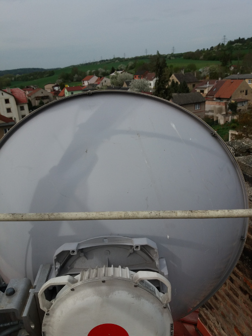 Našli jsme však mnohem lepší řešení! Kolegové si všimli, že z třebichovického úřadu je vidět náš nově postavený stožár na smečenské škole. Tedy jen jeho špička. To však stačí. Díky tomu jsme schopni vést spojení přímo ze Smečna, kam je již týden přivedeno více jak gigabitové napojení. Tím eliminujeme nutnost vést data “oklikou” do Pcher a pak do Třebichovic. To umožní snadnější navýšení kapacity pro Třebichovice, možnost zálohování “internetu”, pokud by došlo k výpadku někde na trase, a také jako bonus získáme i zálohu pro Pchery a nižší odezvy pro stávající zákazníky.